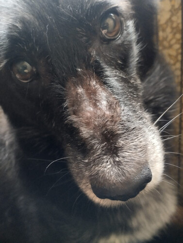 | Периодически, для контроля врачом и корректировки назначений, мы просим фото сестричек с передержки. Вот свежие У Кинзы без апоквела дела вроде хорошо, ттт. На сейчас только мазь и капли вокруг глаз используем