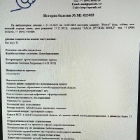 Ненси стала хуже ходить и при осмотре обнаружили большую опухоль под правой лапой. В марте Ненси была вывезена к ветеринарную клинику "Спутник" в Москве для постановки диагноза и корректировки дальнейшего лечения. Результаты осмотра: прогрессирует неврологический дефицит более выраженный на правой грудной клетке. Результаты анализов подтвердили гипотиреоз, была рекомендована гармонозаместительная терапия - Эутирокс 2 раза в сутки постоянно. К постоянно применяемым препаратам Габапентин 300 мг и ПК Мерц 100 мг добавлен Преднифарм 40 мг. По новообразованию: была проведена биопсия (ТИБ), диагноз - липома.