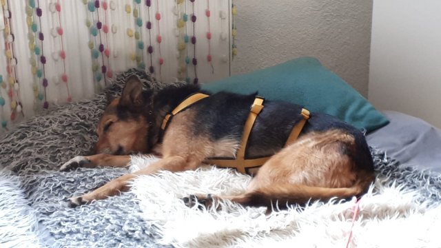 | Айрис нашла Жуле постоянный дом, у зоозащитницы. Это умиротворенное фото говорит само за себя. Насколько Жуле спокойно и хорошо спится :ANGEL:.