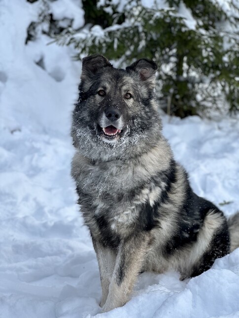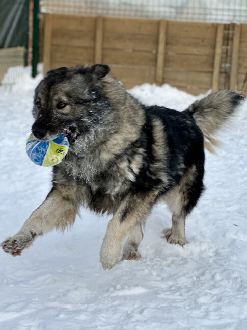 Внешне он напоминает весёлого мишку — возможно, в его роду были кавказские овчарки. Но за внушительной внешностью скрывается самое доброе сердце!