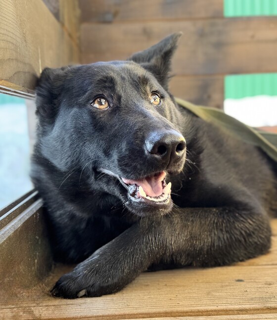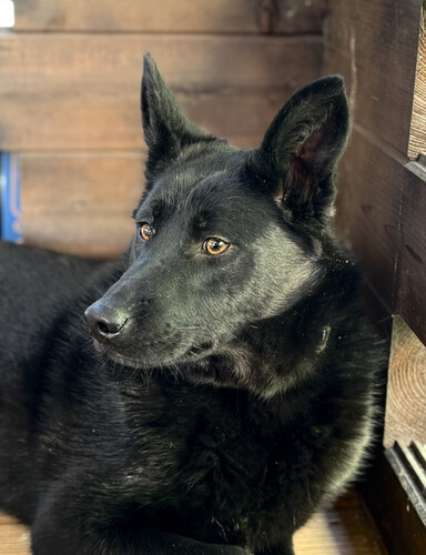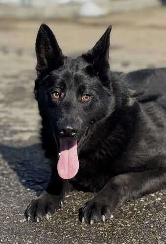 У Хавьера красивая черная шерсть переливается на солнце, она такая густая и плотная, что кажется будто его предок из каких-то пород черных овчарок. И острые уши и выразительные янтарные глаза, полные мудрости, не как у годовалого подростка. Он вырастет мощным и крупным.