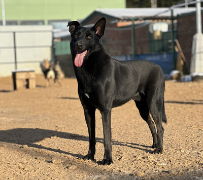 Очередной черный кобель, подумали мы, когда увидели новенького, высаженного из карантина. Да, расцветка конечно красивая, но таких у нас наверное штук 10, практически его близнецов... Чуть позже мы поняли, что есть и изюминка - очень яркие глаза, чистые, прозрачно-кристальные.