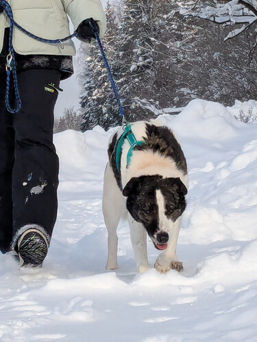 Харли хорошо с собаками, но чаще предпочитает быть рядом с человеком - может просто лежать и наблюдать за происходящим на выгуле.