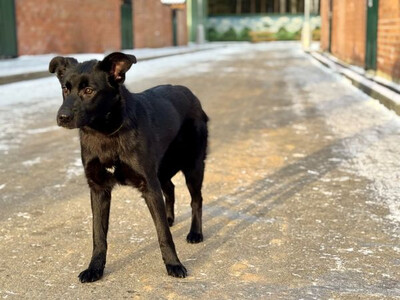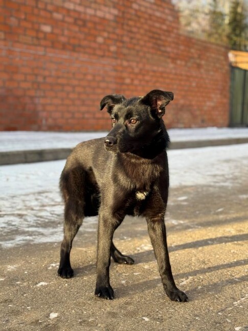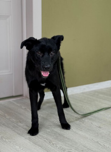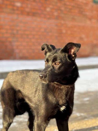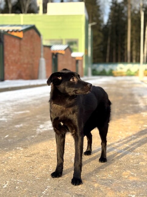 Асти родилась в мае 2025 года. Весь помет оказался в приюте совсем крошками. Асти первой высадили к сектор, где живут уже взрослые собаки. И она сейчас самая младшенькая среди таких взрослых собак.