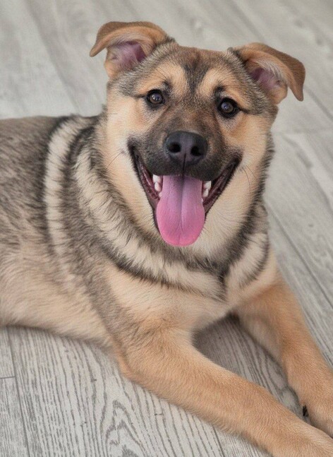 У Рэкса красивый, благородный окрас с мягкими тёплыми переходами — словно лёгкий «волчий» рисунок на густой, пушистой шерсти. Выразительные тёмные глаза смотрят прямо и спокойно, без тревоги. Его мордочка всегда будто слегка улыбается, а забавные полустоячие ушки живо реагируют на голос — стоит только обратиться к нему, и они сразу приподнимаются, выдавая интерес и внимание. Пушистый хвост дополняет образ — в нём читается и радость, и готовность к общению.
